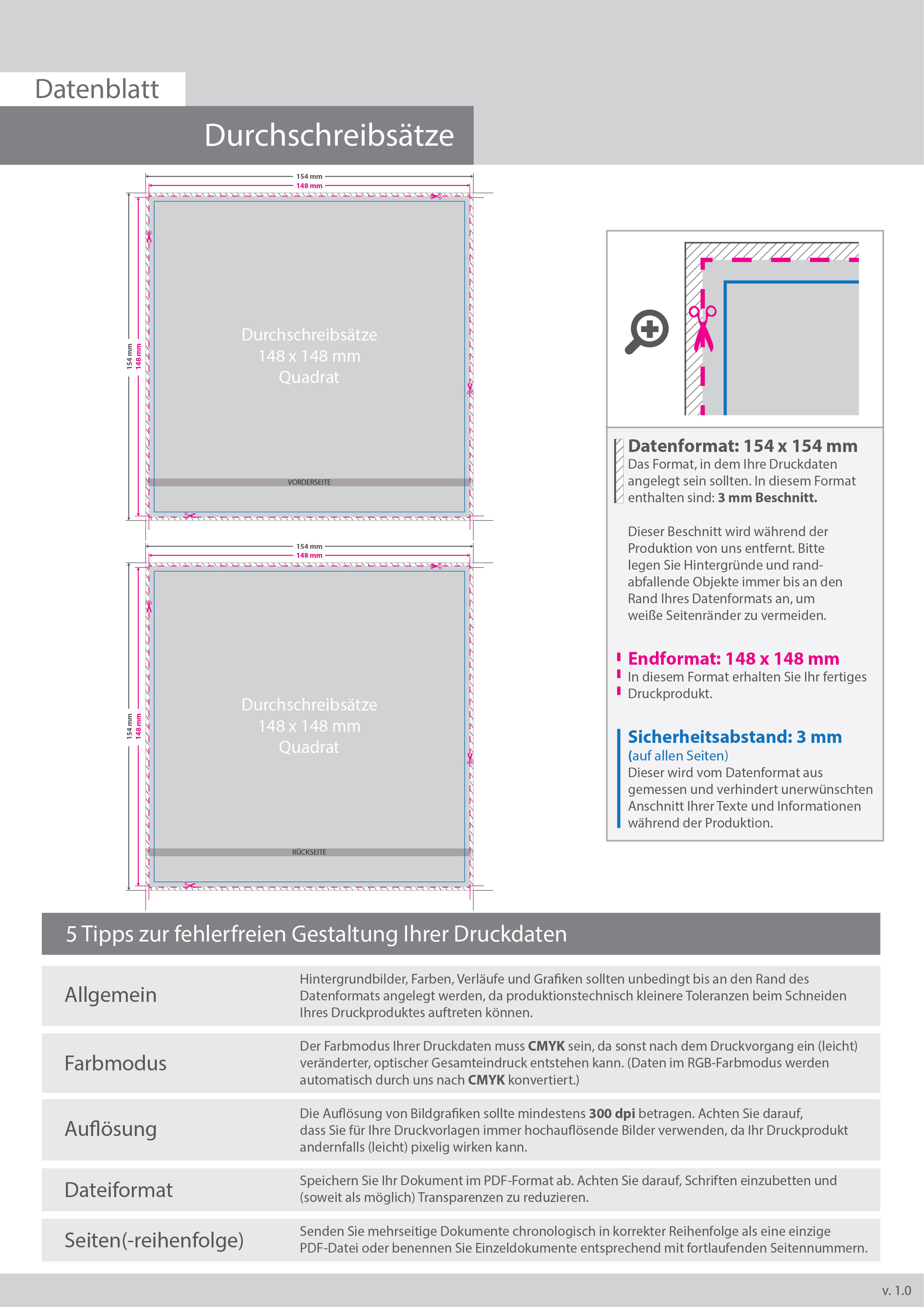 Durchschreibesätze Quadrat 14,8 cm x 14,8 cm, 2-fach, 1/1-farbig