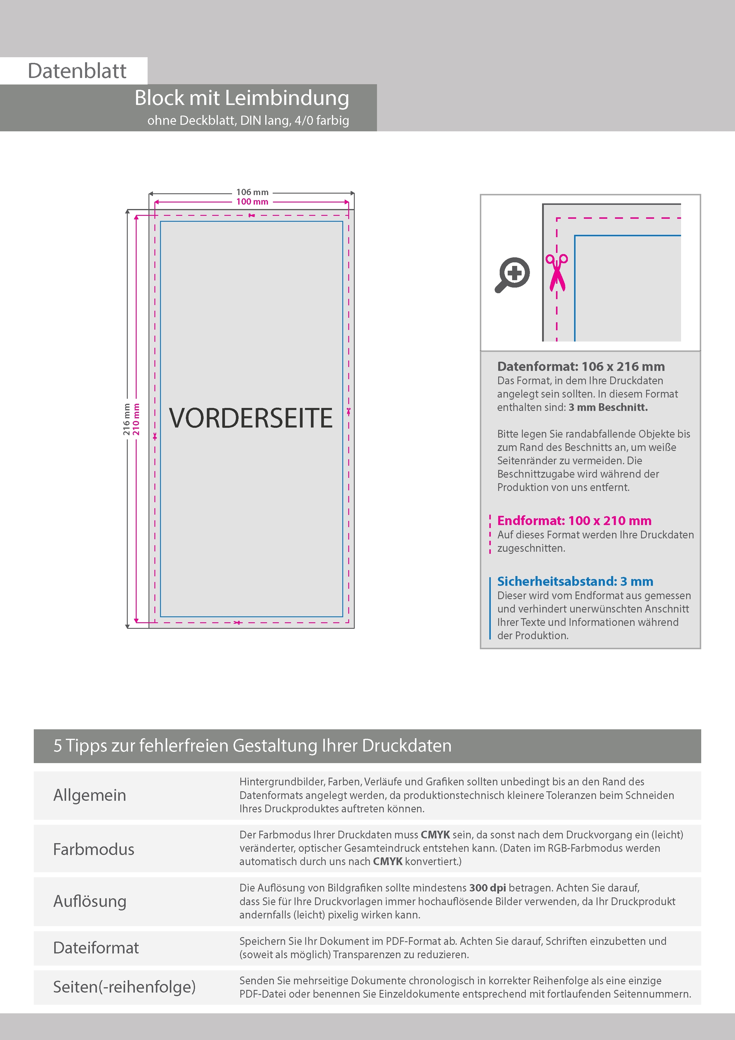 Block mit Leimbindung, DIN lang, 50 Blatt, 4/0 farbig einseitig bedruckt