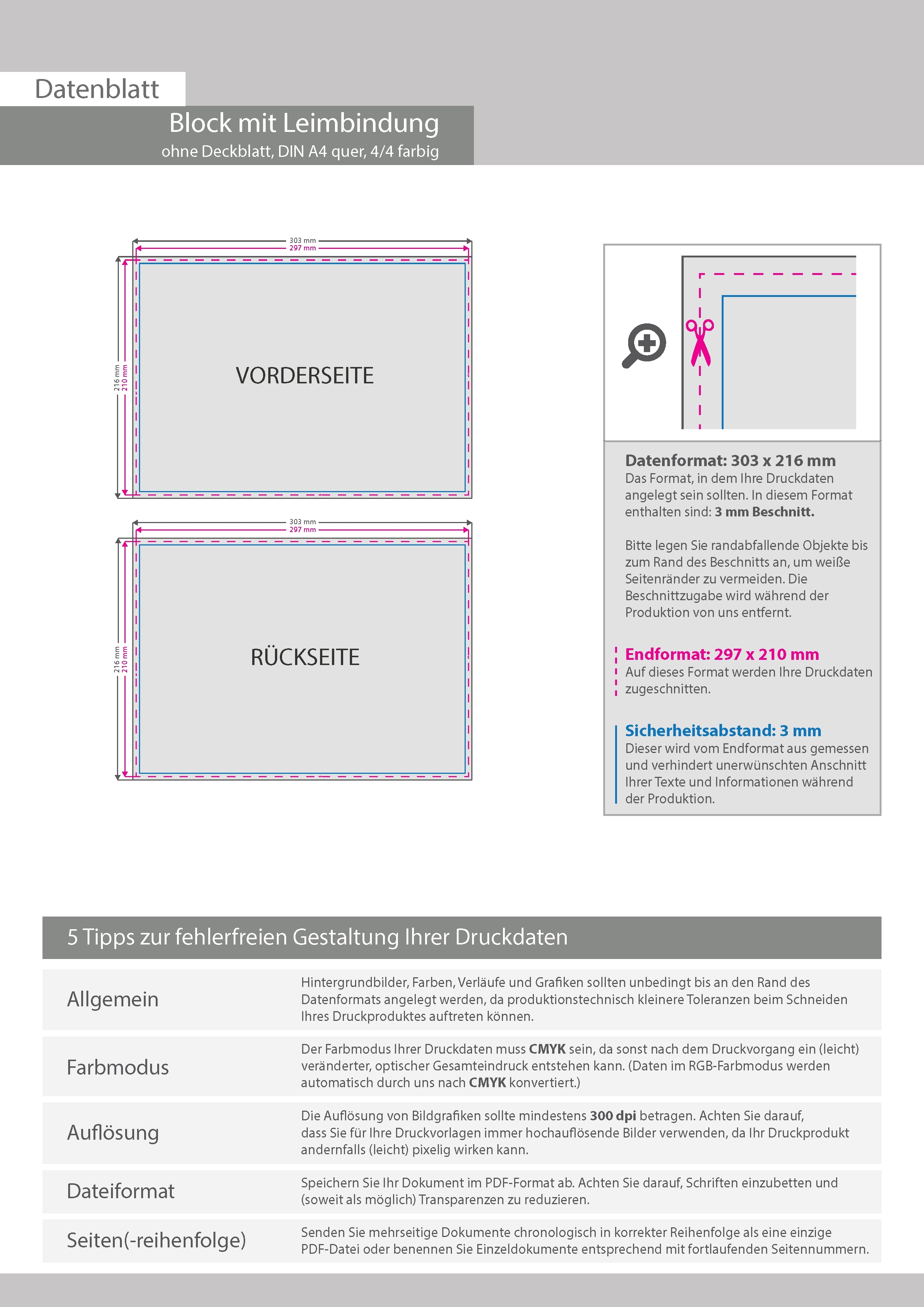 Block mit Leimbindung, DIN A4 quer, 200 Blatt, 4/4 farbig beidseitig bedruckt